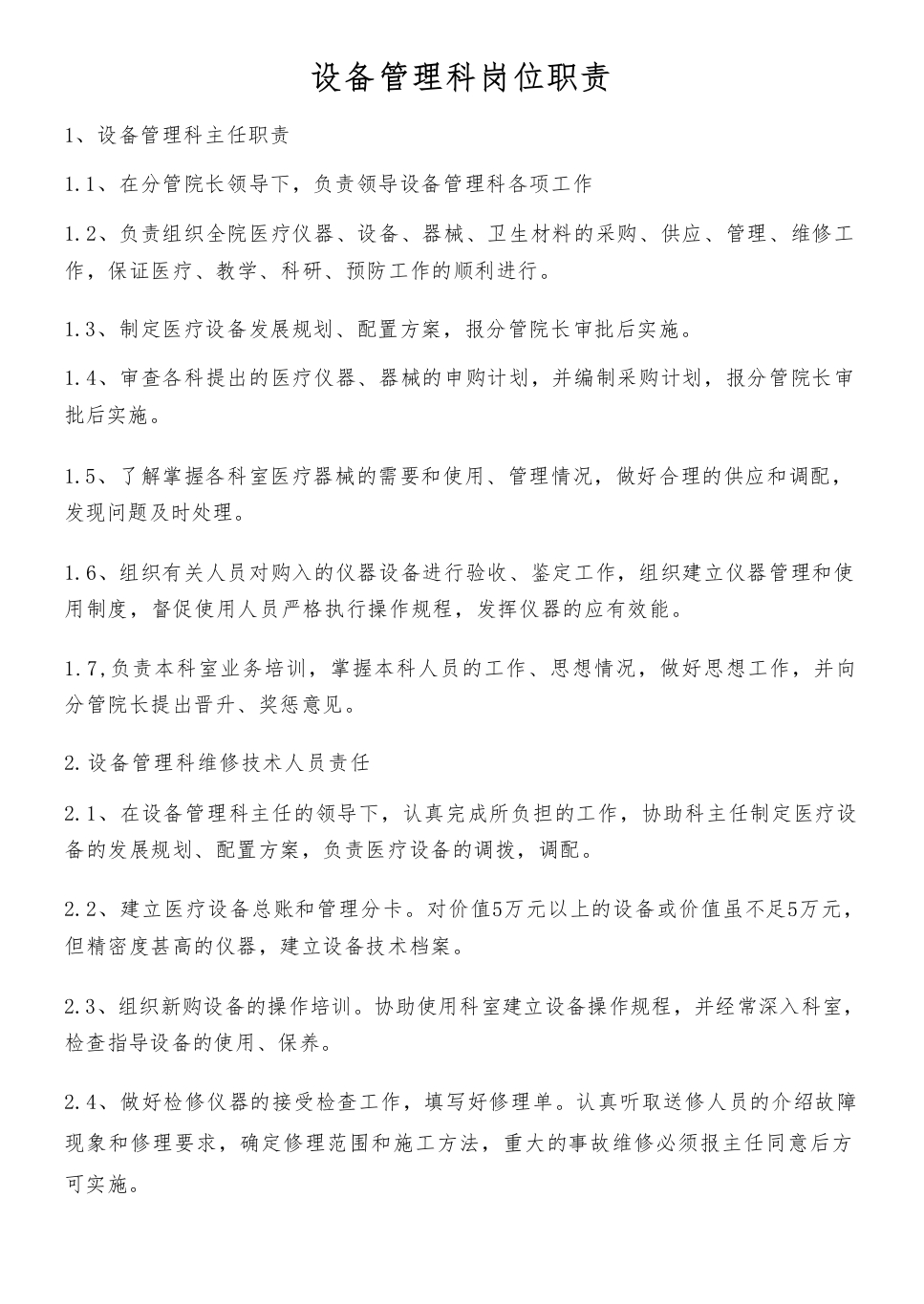 10、医疗设备故障应急预案11、辐射安全管理制度12、医疗仪器设备操作人员培训考核制度13、一次性无菌医疗器械管理制度14、医疗设备巡检制度15、设备保养制度16、医疗器械法律法规监督和考核制度17、医疗设备计量管理制度18、医用耗材仓库管理制度19、医疗器械临床使用安全事件监测与报告制度一-附件一:医疗器械使用安全情况考核记录表一一附件二:医疗器械使用安全情况记录表20、医疗器械安全事件、不良事件监测和报告制度21、供氧站防火安全制度22、氧气供应工作流程图23、应急采购工作流程图24、制氧机应急预案25、中央负压机组应急预案26、医疗设备使用管理规范流程图27、医疗仪器设备操作人员培训考核工作流程图28、医疗装备维修工作流程图29、计量管理工作流程图