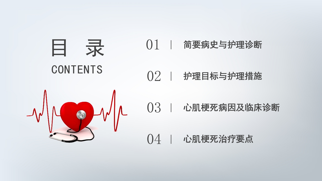 急性心梗护理查房医院急性心肌梗死/知识讲座/案例分析介绍汇报人:ABC科室:心内科