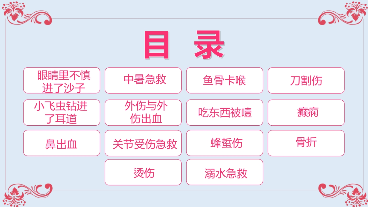 急救小常识●十四种急救方法汇报人:XX日期:20XX.X.X
