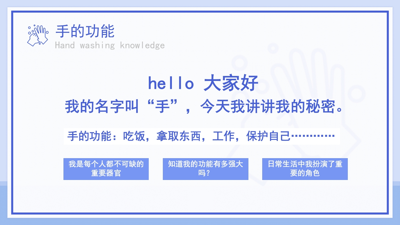 蓝色卡通风手卫生七步洗手法知识科普宣传PPT课件