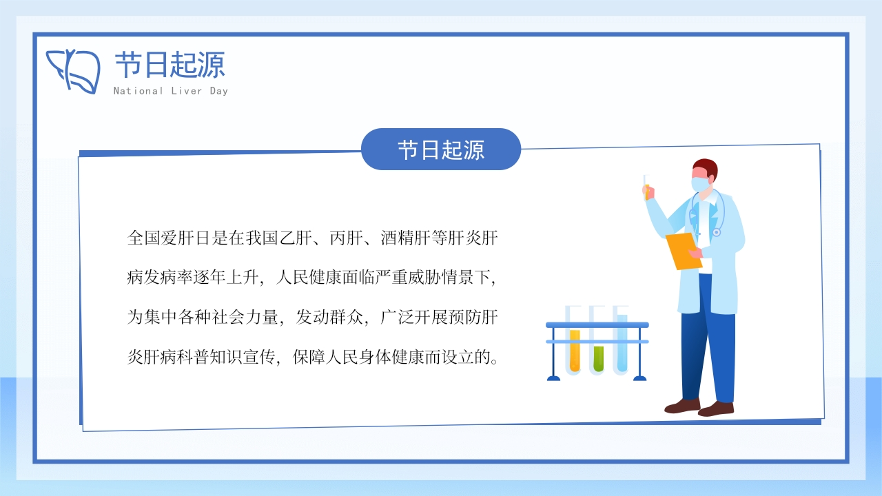 蓝黄卡通风全国爱肝日爱肝护肝健康教育宣传PPT模板-医者文库