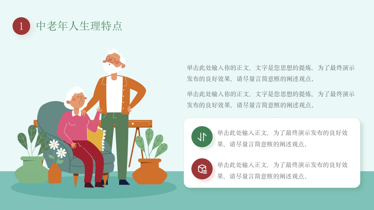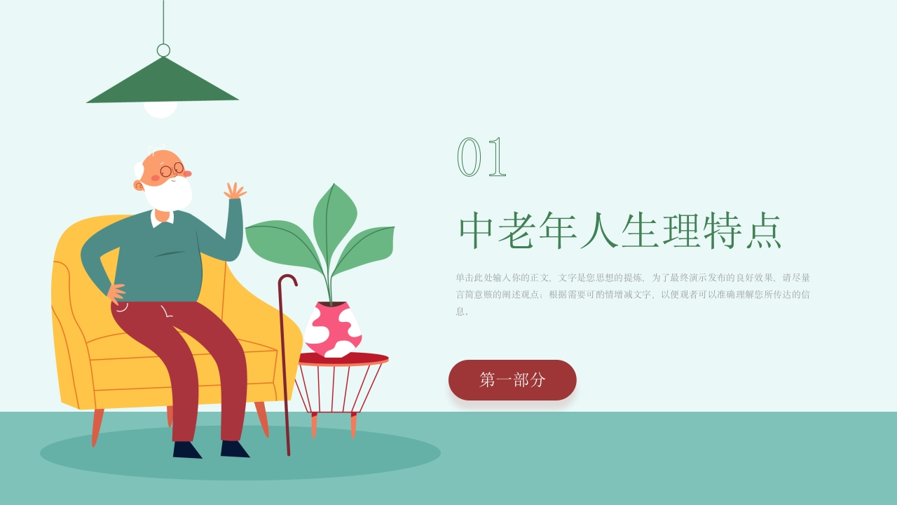 中老年人健康知识讲座中老年人身体健康医学知识讲座PPT单击此处输入你的正文,文字是您思想的提炼,为了最终演示发布的良好效果,请尽量言简意赅的阐述观点;根据需要可酌情增减文字,以便观者可以准确理解您所传达的信息XXX/20XX.01.01