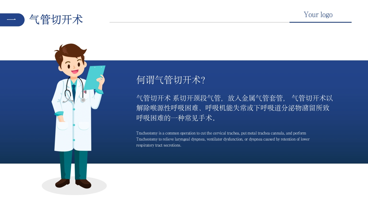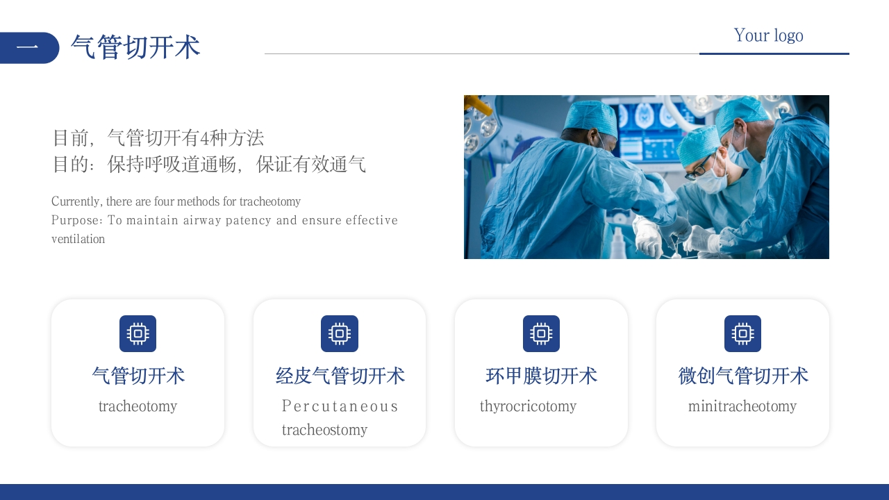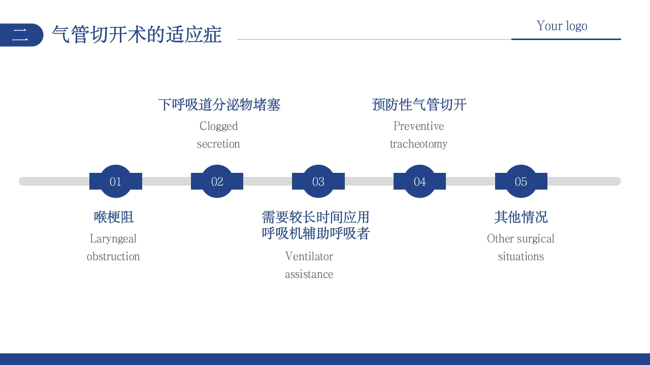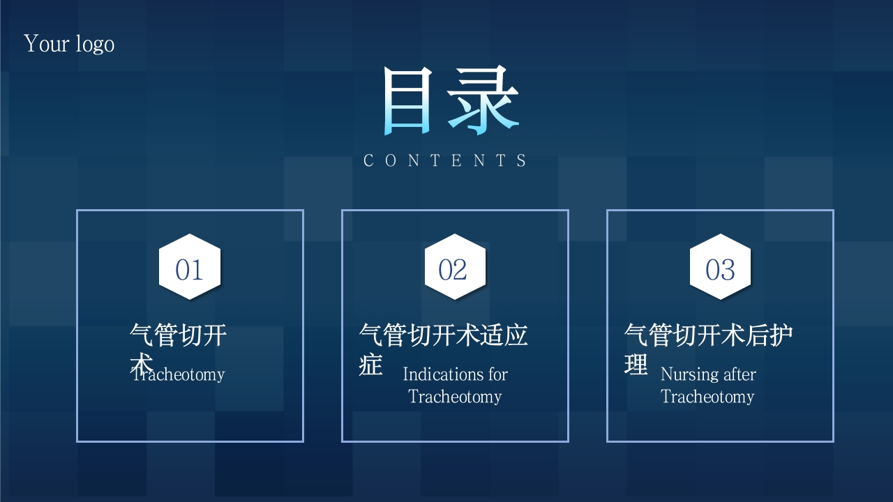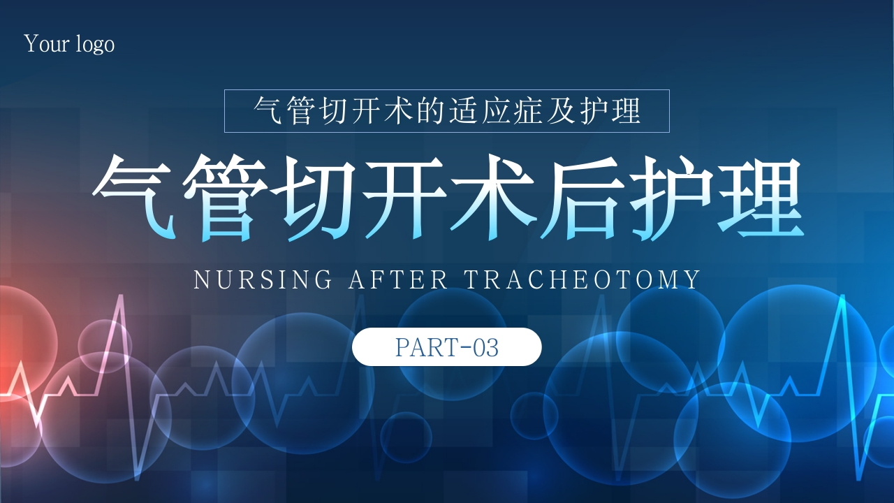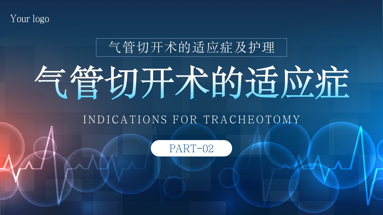 Your logo气管切开术的适应症及护理气管切开病人的护理NURSING CARE OF PATIENTS UNDERGOING TRACHEOTOMY汇报人:XXX时间:20XX年X月