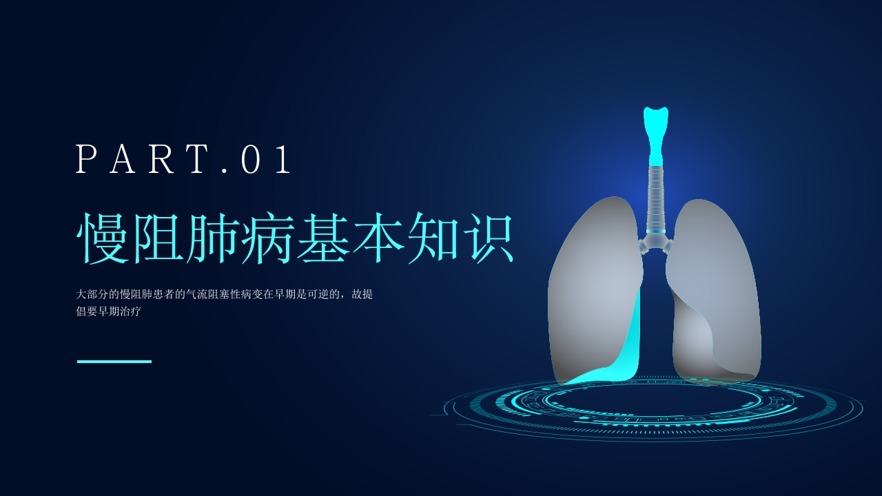 医疗业务培训慢阻肺健康宣教Health education of COPD大部分的慢阻肺患者的气流阻塞性病变在早期是可逆的,故提倡要早期治疗2022.10