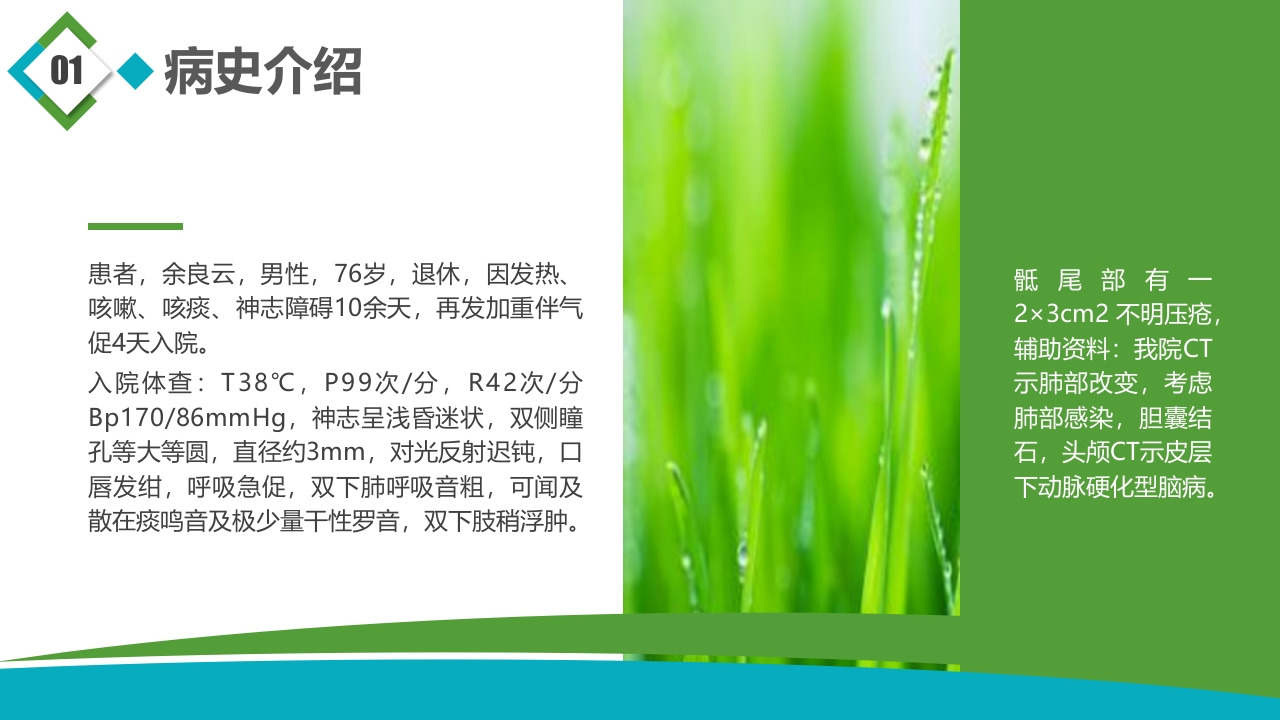 D⑩M这里可以简要的描述您的项目肺部感染护理查房PPTIntroduction Of Atmospher icBusiness Plan Startup Plan PPTTemp late,Complete Framework汇报人:XXX部门:护士部