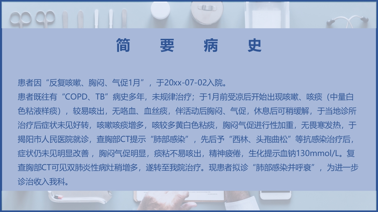 例肺部感染并呼吸衰竭病人的护理查房主讲人:Xxx08:15