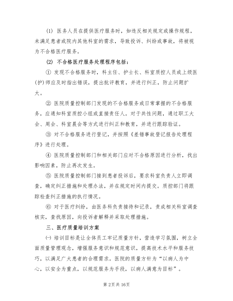 2024年医院医疗质量管理与考核细则1、医疗护理质量监控由护理部、后勤、设备等部门对各科室的医疗护理及医疗环境、设备进行监督、检查和管理。2、质量控制目标旨在及时发现医疗质量问题,督促进行改正,以促进医疗质量的提升。3、质量控制方法包括:(1)上级医(护)师通过查房、病例讨论和检查病历等方式,对下级医(护)师进行实时检查和控制。(2)科主任(护士长)和科医疗质量管理小组通过定期或不定期的查房、病例讨论、病历检查和工作评估,对全科医疗护理质量进行监控。(3)医院质量控制部门结合日常掌握、随机抽查和定期检查,对各科室进行综合评估。(④)通过发现问题、分析、评价和推动整改,以实现质量改进,确保质量标准。(⑤)实施缺陷管理并进行记录。医疗质量控制数据细化至科室,科室数据细化至个人。(6)在科学管理的基础上,注重人性化管理,以教育和整改为目标,促进质量提升。(7)以环节管理为主,日常掌握与随机抽查为主,结合终末质量管理与定期检查。4、不合格医疗服务处理:第1页共16页