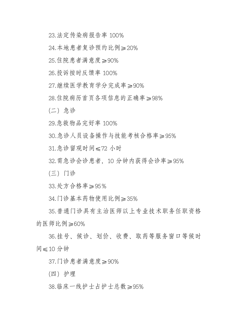 医疗质量控制指标医用文库4个月前发布关注私信17.83KB8页0347医疗质量控制指标此内容为付费资源,请付费后查看¥29黄金会员免费立即购买您当前未登录!建议登陆后购买,可保存购买订单付费资源已售 6 第1页 / 共8页 第2页 / 共8页 第3页 / 共8页 试读已结束,还剩5页,您可下载完整版后进行离线阅读 © 版权声明© 本站内容版权归原作者所有。 本站仅为信息存储平台,不对文章观点负责,请谨慎甄别。 禁止任何形式的商业用途!如有侵权,请联系我们,将于7日内处理。 站如收取任何费用(例如会员费、下载费等),均仅为维持服务器运营、带宽及数据存储所产生的成本费用,并非对版权内容的售卖或商业授权,特此说明。 THE END管理制度 文本预览 医院对科室质量与安全管理指标XXX人民医院医务科202X-01-18修订医院对科室医疗质量与安全控制目标(一)临床医疗1.病床使用率≤93%2.病床周转次数≥35次/年 查看更多 收起部分 喜欢就支持一下吧点赞7 分享QQ空间微博QQ好友海报分享复制链接收藏